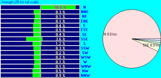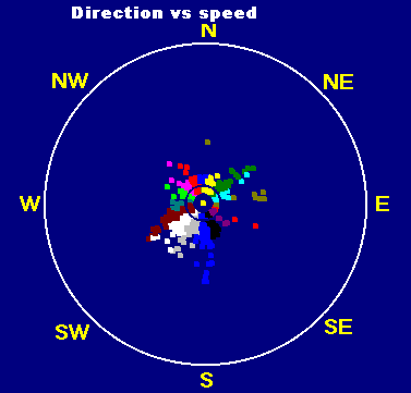 Maximum windspeed 17.0 mph from 350 on day 05 at time 19:50